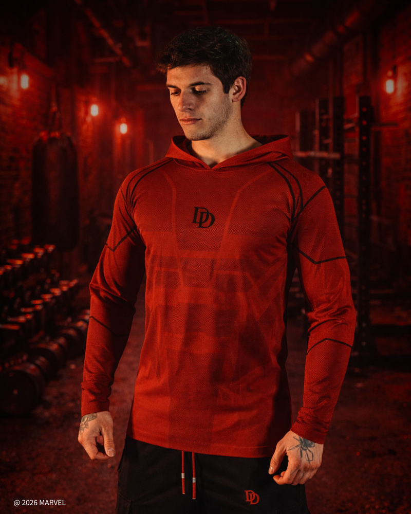 Inspired by the iconic red suit and reworked as modern training apparel, this limited collection brings Daredevil’s unmistakable look into performance-driven design. Every piece is built with a streamlined silhouette and durable construction, designed to move cleanly through training sessions and everyday wear.This collection is made as training gear. The result is apparel that holds its shape, stays comfortable through movement, and delivers a sharp, structured look the moment it’s on. This is Daredevil, reimagined by SuperX. In collaboration with Marvel.