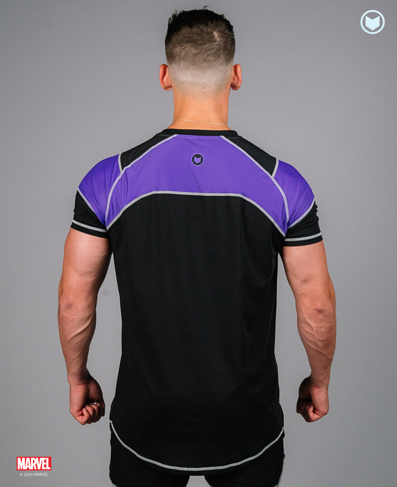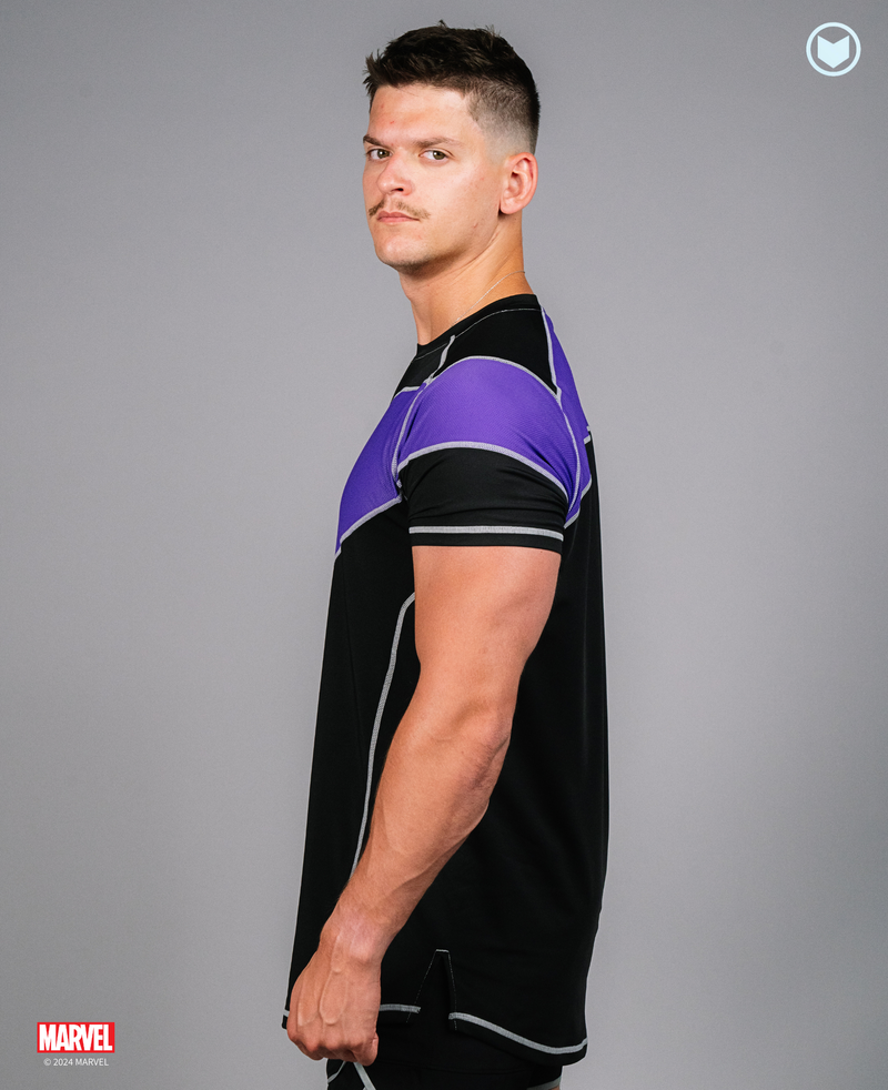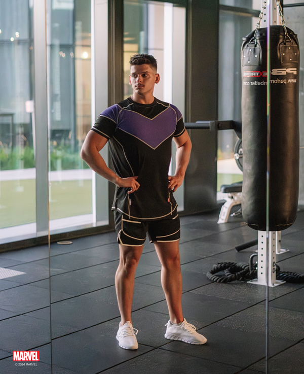 Introducing the first officially licensed Hawkeye activewear collection by Marvel. This collection captures the precision and stealth of Marvel's greatest archer, featuring subtle nods to his iconic quiver and arrow designs. Handcrafted with a premium 4-way stretch fabric blend, this collection is designed for those who want to train with the focus and skill of their favorite hero. Feel the agility, accuracy, and dedication of Hawkeye with every move.